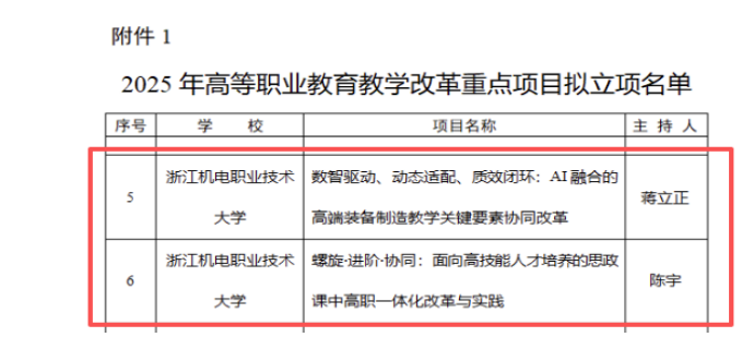 浙江机电职业技术大学入选2025年浙江省高校继续教育教学改革重点项目