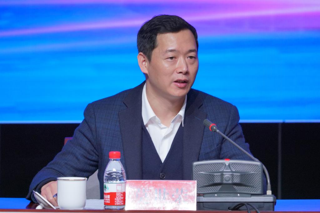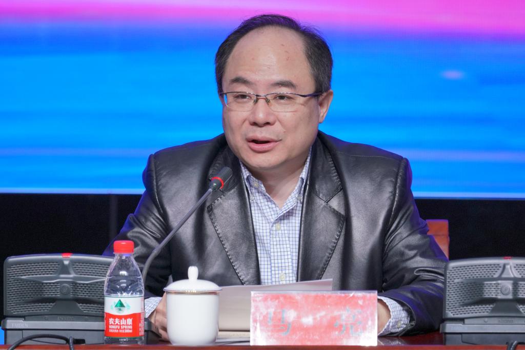 教育部科技发展中心网络信息处处长(虚拟现实研究中心主任)马亮代表专家组发表讲话。他向与会人员详细解读了党的十九届五中全会精神和职业教育信息化基础设施建设政策背景,指出全会精神为新时代建设教育强国指明了方向,要充分发挥在线教育优势,完善终身学习体系;要建设学习型社会,增强职业技术教育适应性;要深化职普融通、产教融合、校企合作,探索中国特色的学徒制度,大力培养技术技能人才;要加快虚拟现实、人工智能等新型信息技术在教育教学中的深度应用,构建开放共享的数字化教育体系。马亮处长分析了在信息技术与教育教学深度融合的现实背景下,建设职业教育虚拟仿真示范实训基地的必要性,阐述了如何促进信息技术和教育教学深度融合、推进虚拟现实在教育教学中的应用、建设具有职业教育类型特色、适用于职业院校学生的虚拟仿真示范实训基地的路径和方案。