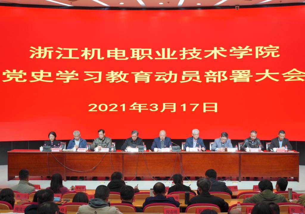 开展党史学习教育是当前和今后一段时期各级党组织的重要政治任务。要注重对标对表开展党史学习教育,在学史爱党中进一步坚定理想信念,在以史为鉴中进一步坚定“四个自信”,在立德树人中进一步坚定使命担当;要注重把握主线开展党史学习教育,以学思践悟习近平新时代中国特色社会主义思想为主线,坚持分层次、多层面、全覆盖组织引导党员、干部开展学习交流,从党史中更好地感悟信仰之力、理想之光、使命之艰、担当之要;要注重凸显特色开展党史学习教育,紧紧围绕学校“升本攻坚”和“改革攻坚”,要紧密联系“立足新发展阶段、贯彻新发展理念、构建新发展格局”的实际,以昂扬向上的姿态在忠实践行“八八战略”、奋力打造“重要窗口”进程中展现机电人的担当;要注重紧扣“实”字开展党史学习教育,通过学习教育使全校党员干部焕发出来的热情转化为攻坚克难、干事创业的实际成果,以改革激发新动力、以创新赢得新优势,在推进我校治理能力和治理体系现代化方面实现新突破,在全力推进“双高计划”建设上实现新突破,在引育高层次人才队伍上实现新突破,在落实全面从严治党上实现新突破。