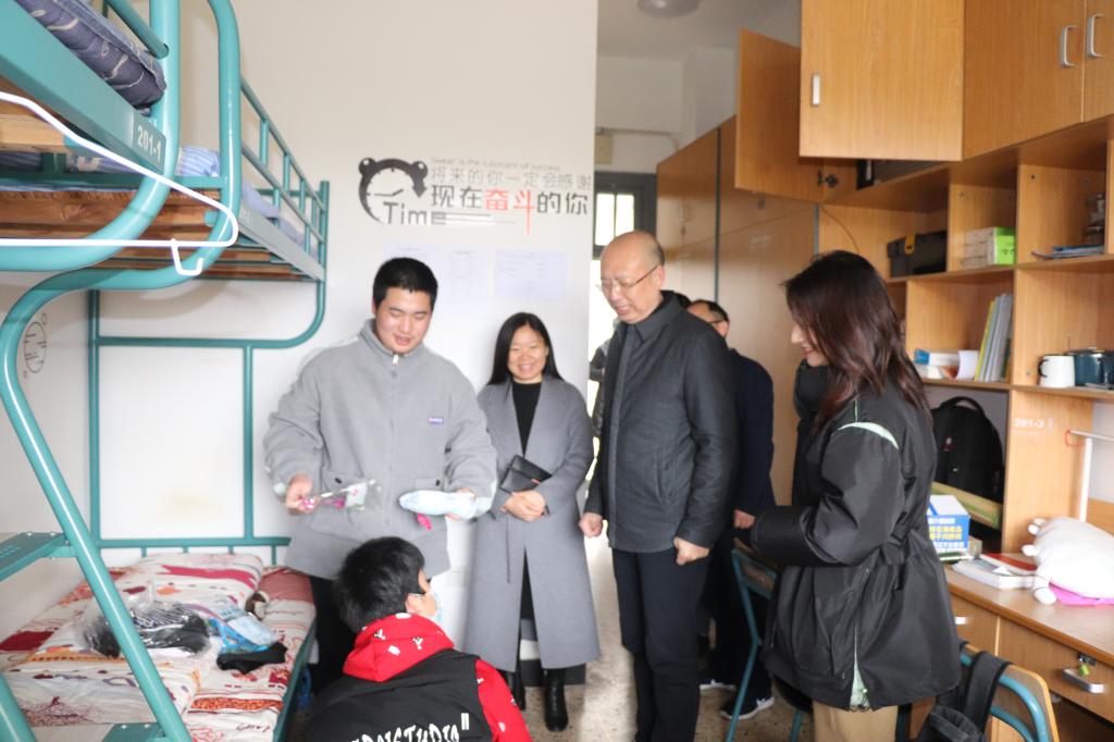 党委书记汤兆武、党委委员项建斌一行来海宁校区,检查和指导开学工作。汤书记来到学校各大门查看学生返校报到情况,现场了解秩序管控和体温检测设备运行情况,并要求相关部门持续做好疫情防控保障措施,确保开学安全、平稳、有序。随后,汤书记深入学生公寓看望了部分返校学生,他不时与学生亲切交谈,并叮嘱学生要做好个人防护,加强身体锻炼,尽快投入校园学习生活状态。