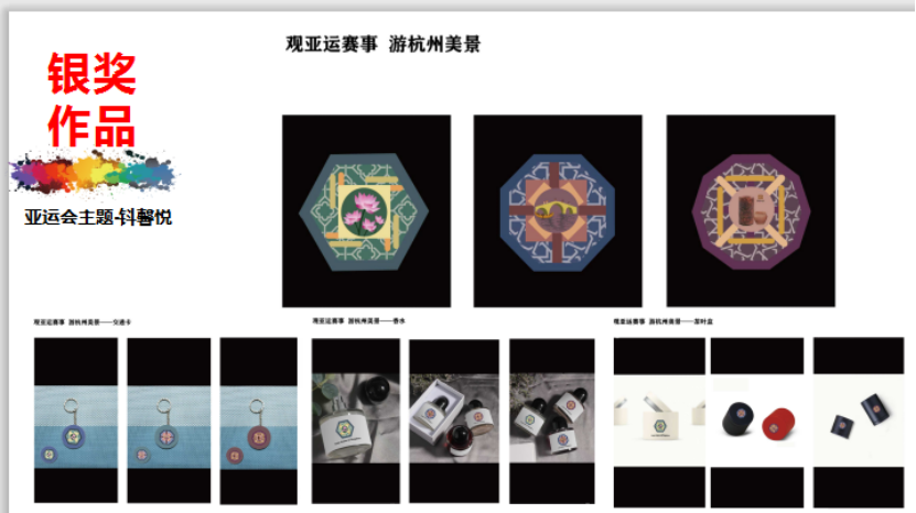 自该大赛举行以来,创意设计学院就将大赛的主题项目融入到相关课程的项目中,通过大赛主题的项目化,融入课程思政,在扇形、扇艺、伴手礼等主题上以亚运的人文精神及杭州的地域文化为创作方向,实现了课程项目作品到大赛产品的流程化,设计扇形扇艺、杭州亚运包装设计、书签、茶叶包装、交通卡等,我校学子提交的作品创意新、设计大胆,呈现材料非常多,与亚运的主题非常的契合,最终获得了一金、三银、六铜的优异成绩,展示了我校学子人文与专业的综合素质。
