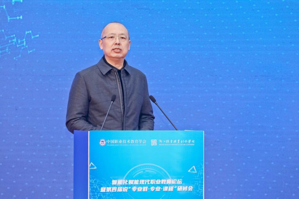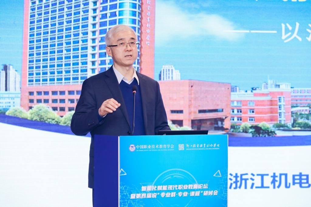 浙江机电职业技术学院院长贺星岳作题为《数字化赋能 助力职业教育提质培优——以浙江机电职业技术学院为例》的学术报告,从数字化赋能的时代背景、数字化赋能的实践创新、数字化赋能的未来方向等三个层面进行深入解读。