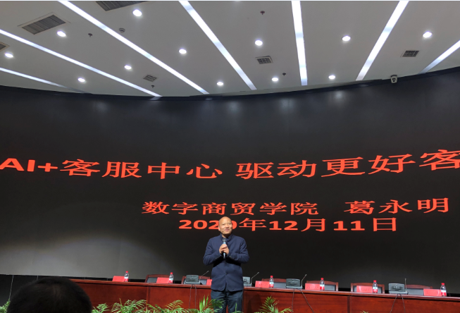 数字商贸学院葛永明院长作了《AI+客服中心驱动更好客户体验》的主题分享,从AI对未来就业岗位的影响娓娓道来,从智能导购、数字治理、人际陪伴讲到客服工作的智能升级,从电商客户、软件平台、运营企业的痛点切入,道出优秀的人工智能训练师的职业前景。