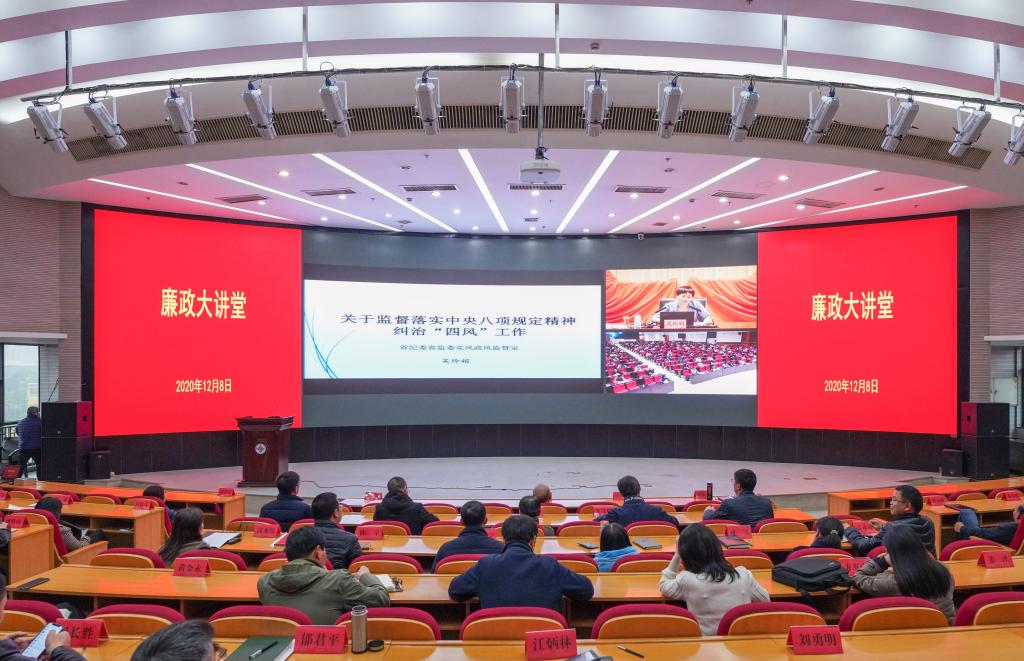 学校一直把举办“廉政大讲堂”作为加强党员领导干部党性党风党纪教育和监督管理的一项重要举措,本期“廉政大讲堂”正值中央八项规定出台八周年之际,会上全体党员干部观看了由省纪委省监委党风政风监督室副主任吴玲娟同志主讲的《关于监督落实中央八项规定精神 纠治“四风”工作》教学视频,吴玲娟副主任深入阐述了落实中央八项规定精神的重要内涵,同时结合工作实际和典型案例详细解读了违反中央八项规定的十二类问题及政策把握。