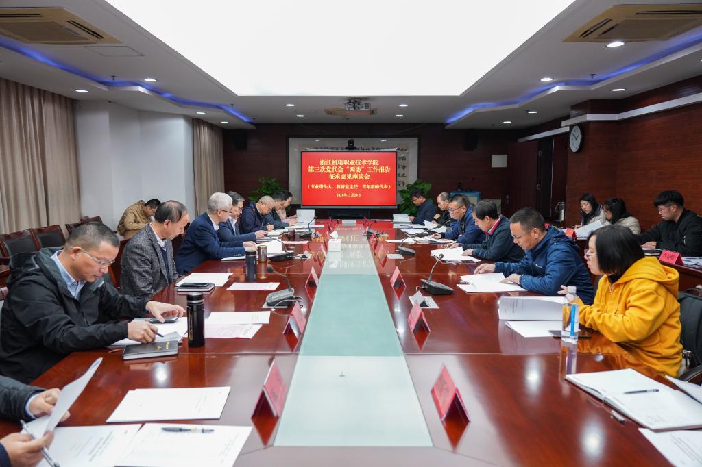 我校第三次党代会召开在即,为充分发扬民主,广泛征求意见,凝聚全校师生员工智慧,11月24日-26日,我校先后组织召开了6场座谈会,就党委工作报告(征求意见稿)和纪委工作报告(征求意见稿),分别面向职能部门负责人、二级学院(部)负责人、专业带头人、教研室主任、青年教师代表、离退休教职工代表、民主党派代表以及学生代表征求意见和建议。校领导汤兆武、贺星岳、周增逵、王建林、丁明军、王斌出席了不同层面的座谈会。