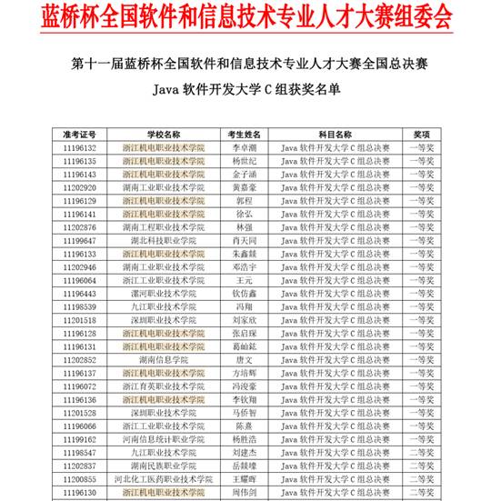 第十一届蓝桥杯全国总决赛(专科组Java程序设计)一等奖名单