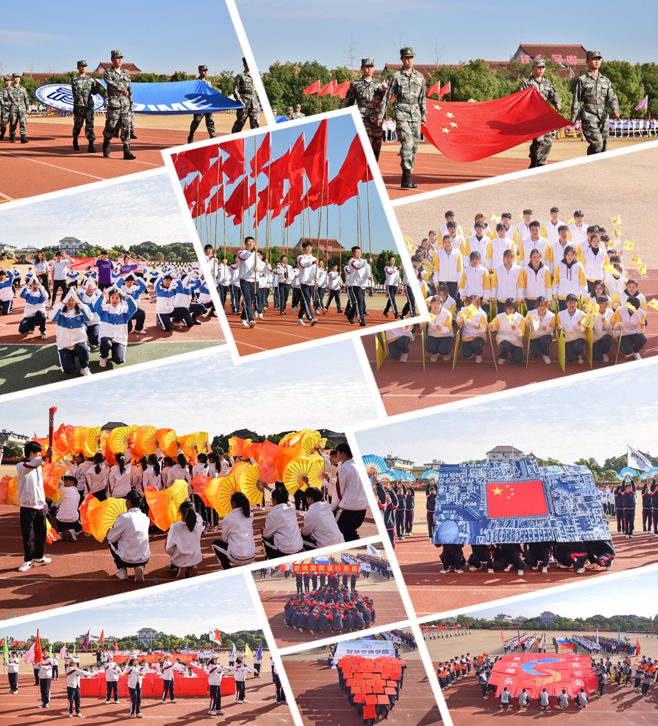 入场仪式上,国旗方阵、校旗校徽方阵、红旗方阵,创意设计学院、国际教育学院、数字商贸学院、现代信息技术学院、增材制造学院、智慧交通学院、智能制造学院、自动化学院等8个学院方阵以及教职工方阵依次入场,接受主席台领导检阅。各方阵意气风发、精神抖擞地依次走过主席台,矫健的身姿、飒爽的风采展示了我校开拓创新的精神风貌,变换的造型、嘹亮的口号彰显出机电人的活力和风采。