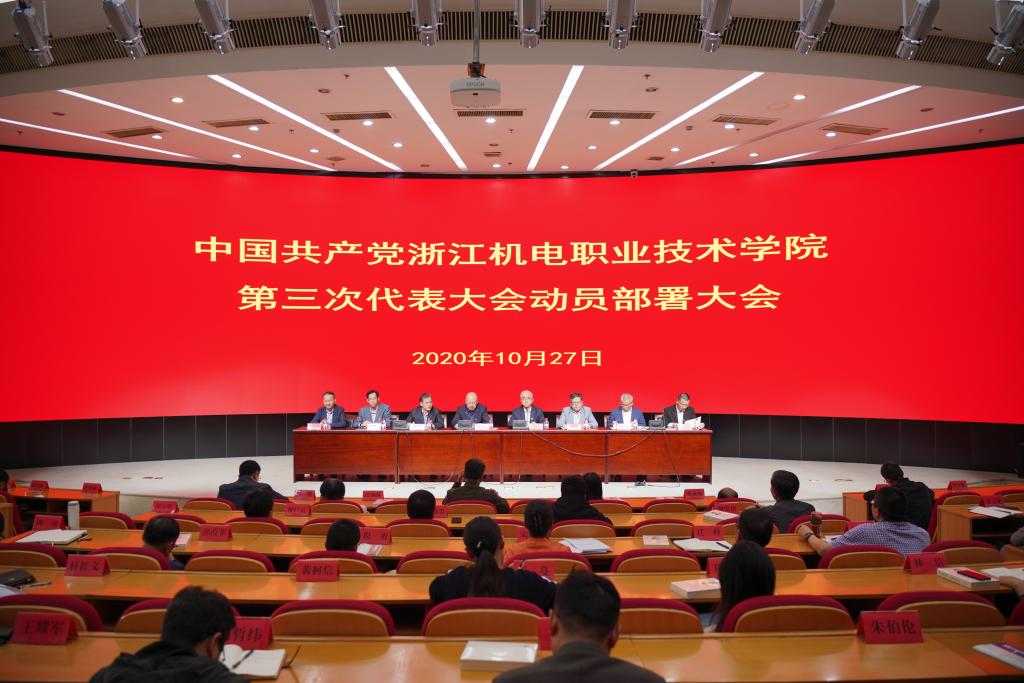 10月27日下午,我校在滨江校区综合楼4楼报告厅召开中国共产党浙江机电职业技术学院第三次代表大会动员部署大会会议。校党委委员、纪委委员、党员处级干部、党员科级干部、各二级党组织(党总支、直属党支部)委员、党支部书记、组织员、具有正高职称的党员参会,会议由校长贺星岳主持。