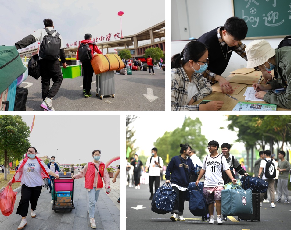 学校今年继续采用线上迎新模式,新生在开学前即可线上系统进行每日健康填报、相关信息采集、选择寝室床位号、床上用品预定、登记报到交通方式等,提高了迎新的便捷度和精准度。受疫情后的校园管控影响,今年新生家长不能陪同新生进校园。新同学们在学生志愿者的带领下,自主完成从入住公寓、报到注册到购买床上用品、整理内务等报到流程。