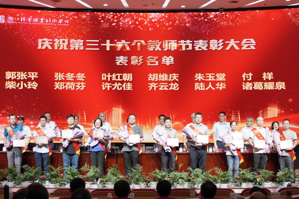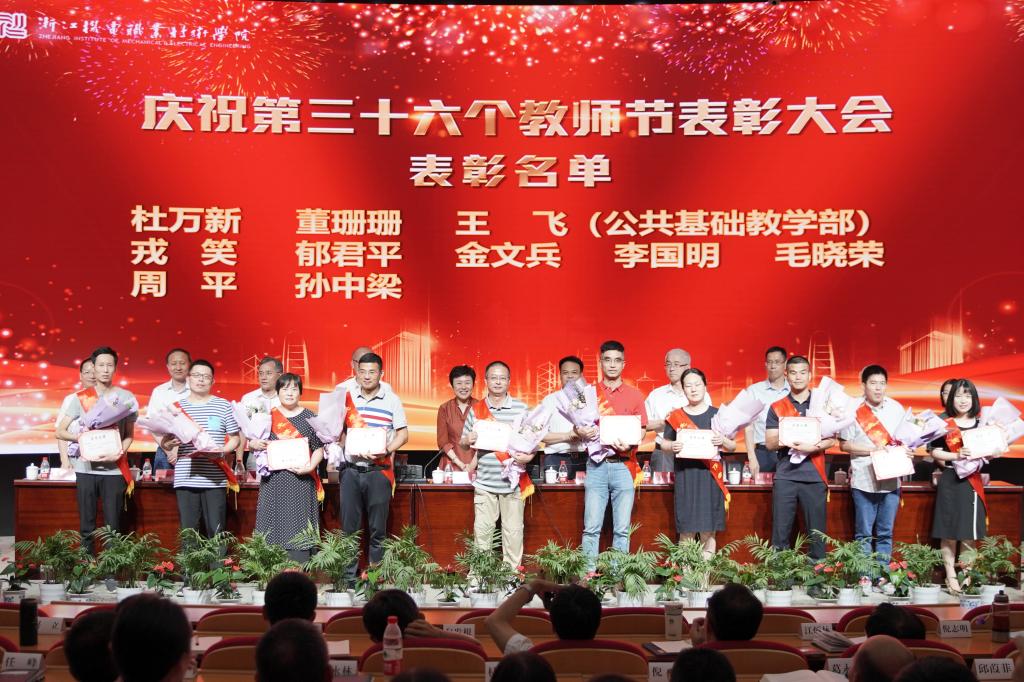 在全校以“三个地”的政治自觉,对标“重要窗口”的新目标、新定位,扎实推进“双高”建设,争创本科层次职业教育试点校之际,9月8日下午,我校在滨江校区召开庆祝第三十六个教师节表彰大会,表彰从教三十年教师和2019年度校级先进。省机电集团党委书记、董事长谢平,副总经理叶健松,学校领导班子成员,全体中层干部,教师、民主党派和学生代表,受表彰人员等参加。大会由校长贺星岳主持。