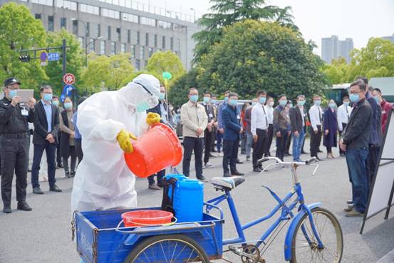 4月22日下午,浙江机电职业技术学院举行疫情防控工作演示和应急演练,滨江区疾控中心副主任朱炜、传染病防制科科长方涛、健康教育科科长胡思源莅临现场指导,学院院长、防控工作领导小组组长丁金昌同志,学校防控工作领导小组全体成员、防控各专项组成员、相关部门负责人、辅导员、班主任等共80多人参加本次演练。副院长、防控工作领导小组副组长王建林主持演练活动。