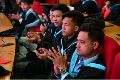 12月31日上午10点,2017级缅甸留学生毕业典礼在滨江校区综合楼4楼学术报告厅举行。出席本次毕业典礼的领导老师有,中缅友协中央执委委员吴森纽、浙江机电职业技术学院院长丁金昌、副院长周纯江、国际教育系主任陶宇、教务处副处长高永祥、学工部副部长王汇、国际教育系副主任王耀军、缅甸留学生专业老师和班主任。