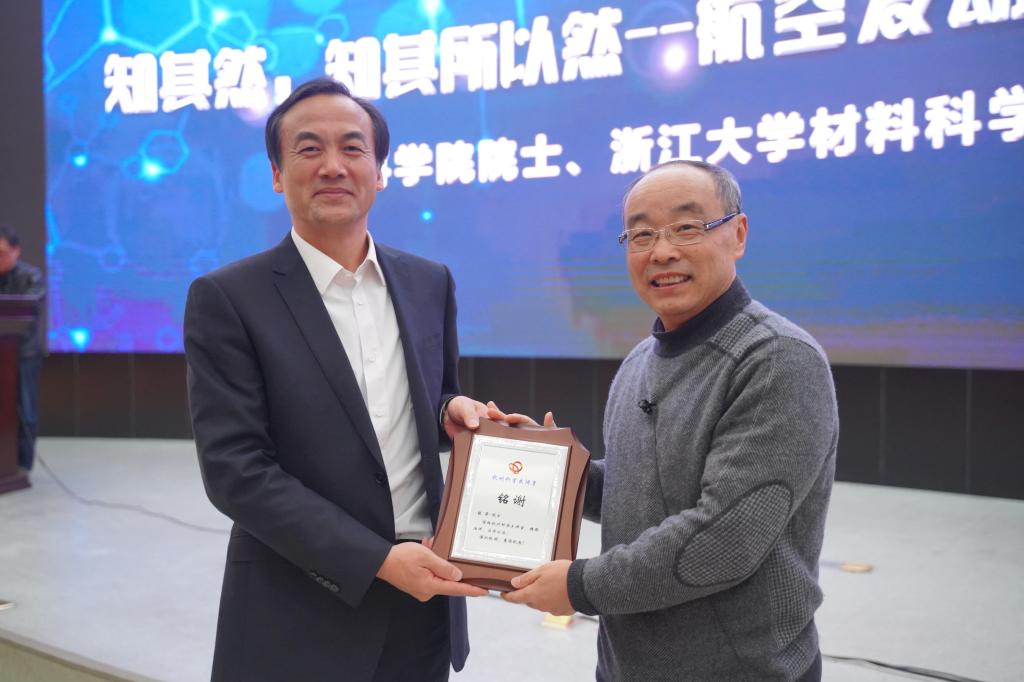 12月11日下午,由杭州市科学技术协会和九三学社杭州市委联合主办、杭州市科技工作者服务中心和浙江机电职业技术学院共同承办的杭州科学大讲堂第153讲在我院滨江校区举行。报告会邀请了中国科学院院士、材料科学晶体结构专家、浙江大学学术委员会主任、浙江大学材料科学与工程学院张泽教授作“知其然,知其所以然--航空发动机关键战略材料研发”的科普报告。杭州市科协党组成员、副主席何志伟,市科技工作者服务中心主任蒋晓斌、服务部洪萍,浙江大学学术委员会专职副秘书长、副研究员朱敏洁,九三学社社员出席报告会,学院领导、中层干部和各系师生代表聆听报告。报告会由学院副院长张耀主持。