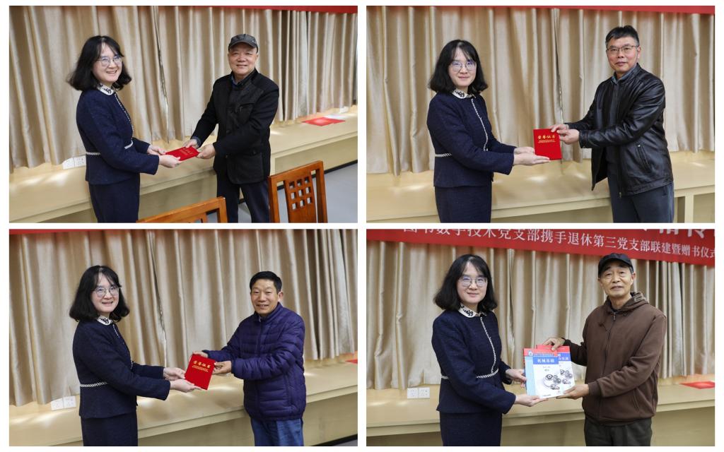 捐赠仪式环节,退休第三党支部左家奇、毛益民、沈国林、陈长生等老同志向图书馆捐赠了涵盖多个领域的珍贵图书,这些书籍承载着老党员对学校文化传承的深切期望。图书馆专业人员还在活动现场向老同志演示了数字资源使用技巧,帮助老同志们更好地共享学校发展成果。