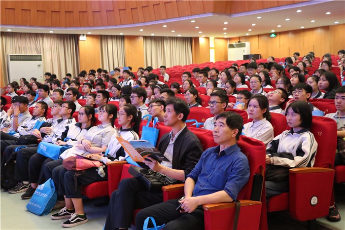 参观结束后,招生就业处郁君平老师为全体师生做了专题报告。他从学院概况、人才培养、师资力量、专业成果、竞赛风采、学生活动、就业升学、招生情况等几个方面介绍了我院的基本情况、特色和亮点,不少同学们表示对来我院求学充满期待。最后,学院招生就业处向每一位师生赠送了招生简章、笔记本、笔等宣传资料,并表示欢迎同学们报考我院。