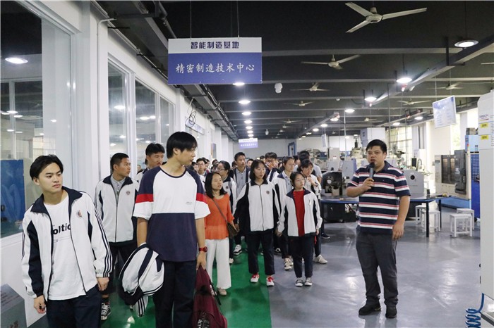 10月12日上午,由曹洪新、朱建明副校长带队,湖州练市中学240余名毕业班师生光临我院开展研学活动。招生就业处、保卫处全体教师参加了接待工作,本次活动安排高中的师生参观了我院的智能制造实训基地、数控技术实训基地、模具和精密制造实训基地、3D打印铸造实训基地以及设计与艺术系实训基地,各基地的老师为师生们认真详细的介绍了基地和相关专业情况,同学们纷纷赞叹我院高端大气的实验实训设备、良好的学习氛围和优雅的环境。
