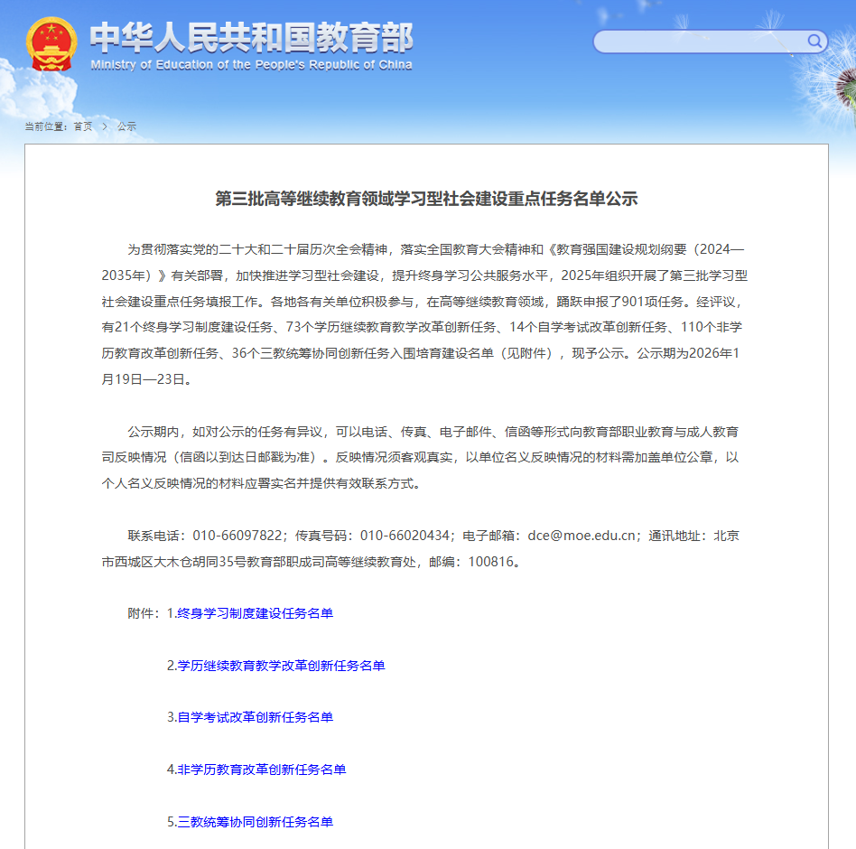 高等继续教育领域学习型社会建设重点任务是教育部推动高等教育服务国家战略、助力全民终身学习的重要举措,旨在遴选一批理念先进、特色鲜明、成效显著的实践项目,引领全国高校深化继续教育改革创新。学校高度重视项目申报工作,系统梳理办学特色,精准定位申报方向,高质量完成申报工作。