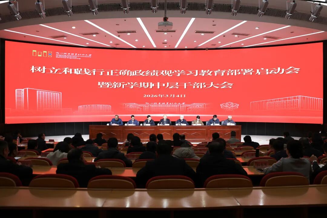 3月4日上午,浙江机电职业技术大学召开树立和践行正确政绩观学习教育部署启动会暨新学期中层干部大会,学习贯彻习近平总书记关于树立和践行正确政绩观学习教育的重要讲话和重要指示精神,并研究安排学校新学期各项重点工作。校党委书记汤兆武部署学校学习教育工作并作动员讲话,校长贺星岳主持会议。学校党委领导班子成员、全体中层干部参加会议。
