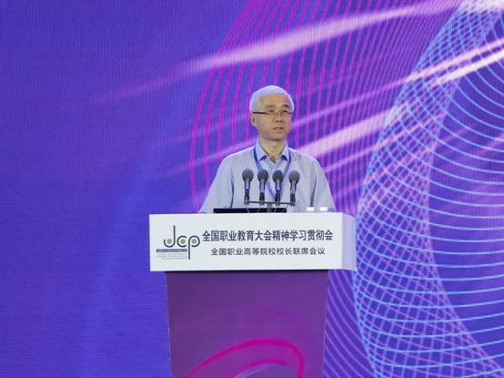 2021年5月21日至22日,全国职业高等院校校长联席会议在山东济南召开全国职业教育大会精神学习贯彻会。大会围绕“优化类型特色•赋能高质量发展”的主题,深入贯彻落实“全国职业教育大会精神”,通过主题报告、专家视角、院校实践、经验分享、成果展示等形式,就高等职业院校落实全国职业教育大会改革任务交流研讨。教育部职业教育与成人教育司副司长谢俐、职业院校发展处处长任占营等出席大会并发表了重要讲话。教育部、山东省教育厅、济南市人民政府、高职院校、社会团体及主流媒体1000余人参会。本次会议由全国职业高等院校校长联席会议主办,济南职业学院承办。我校校长贺星岳、副校长丁明军、教务处副处长高永祥参加了本次年会。