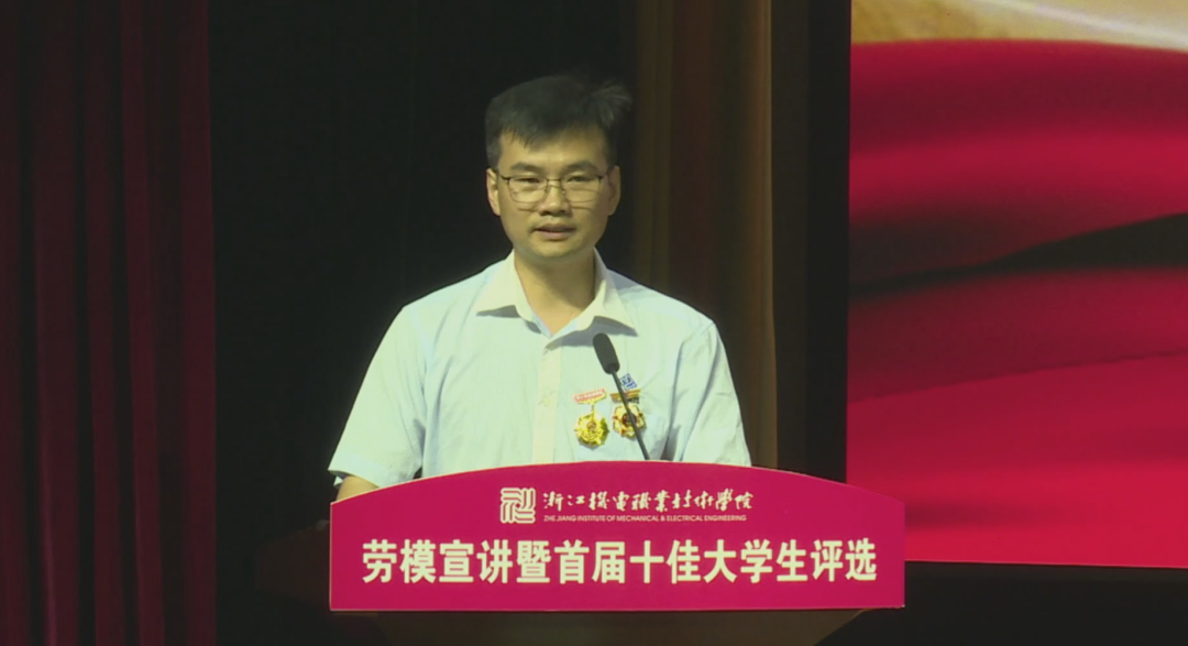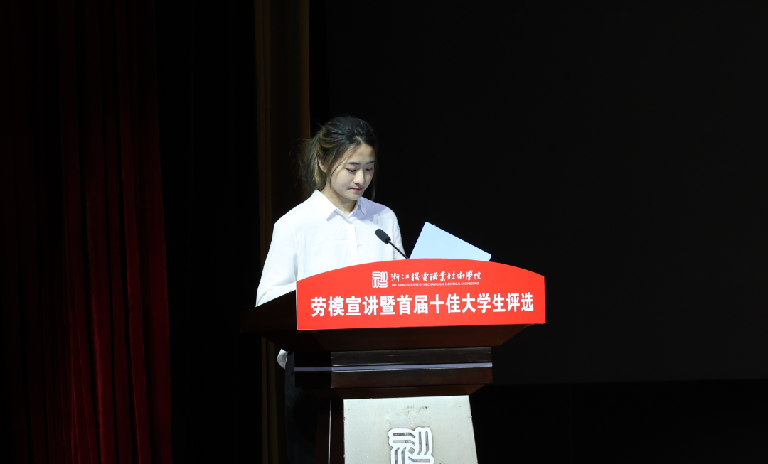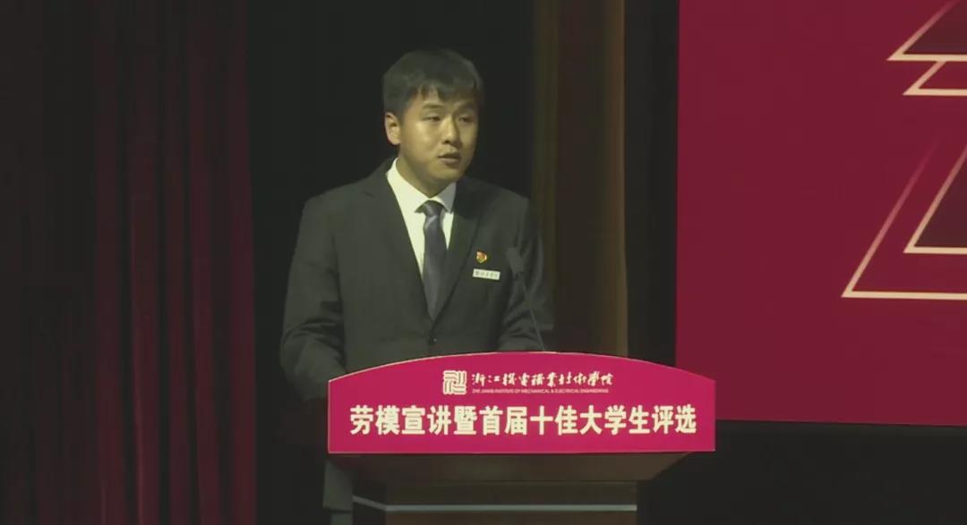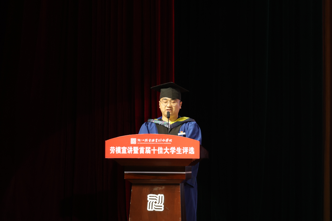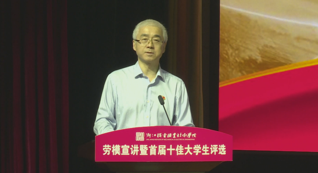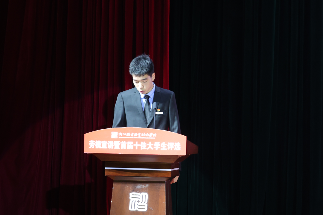 2021年5月18日晚,“学党史·守初心·担使命·展风采”劳模宣讲暨首届十佳大学生评选活动在滨江校区5号楼报告厅举行,校长贺星岳、党委副书记周增逵、学工部负责人、各二级学院党总支书记(副书记)、学工办主任、辅导员和学生代表出席活动。此次评选由浙江工商大学、中国计量大学等本科院校学工部部长,浙江商业职业技术学院、浙江艺术职业学院等高职院校学工部部长以及校内学工部、团委、招生就业处、马克思主义学院等部门代表担任评委。2021年“五一劳动奖章”、“浙江省劳动模范”获得者2005届杰出校友代表杨炯应邀参加活动并进行事迹宣讲。活动全程线上直播,海宁校区近四千余名师生通过网络全程观看。