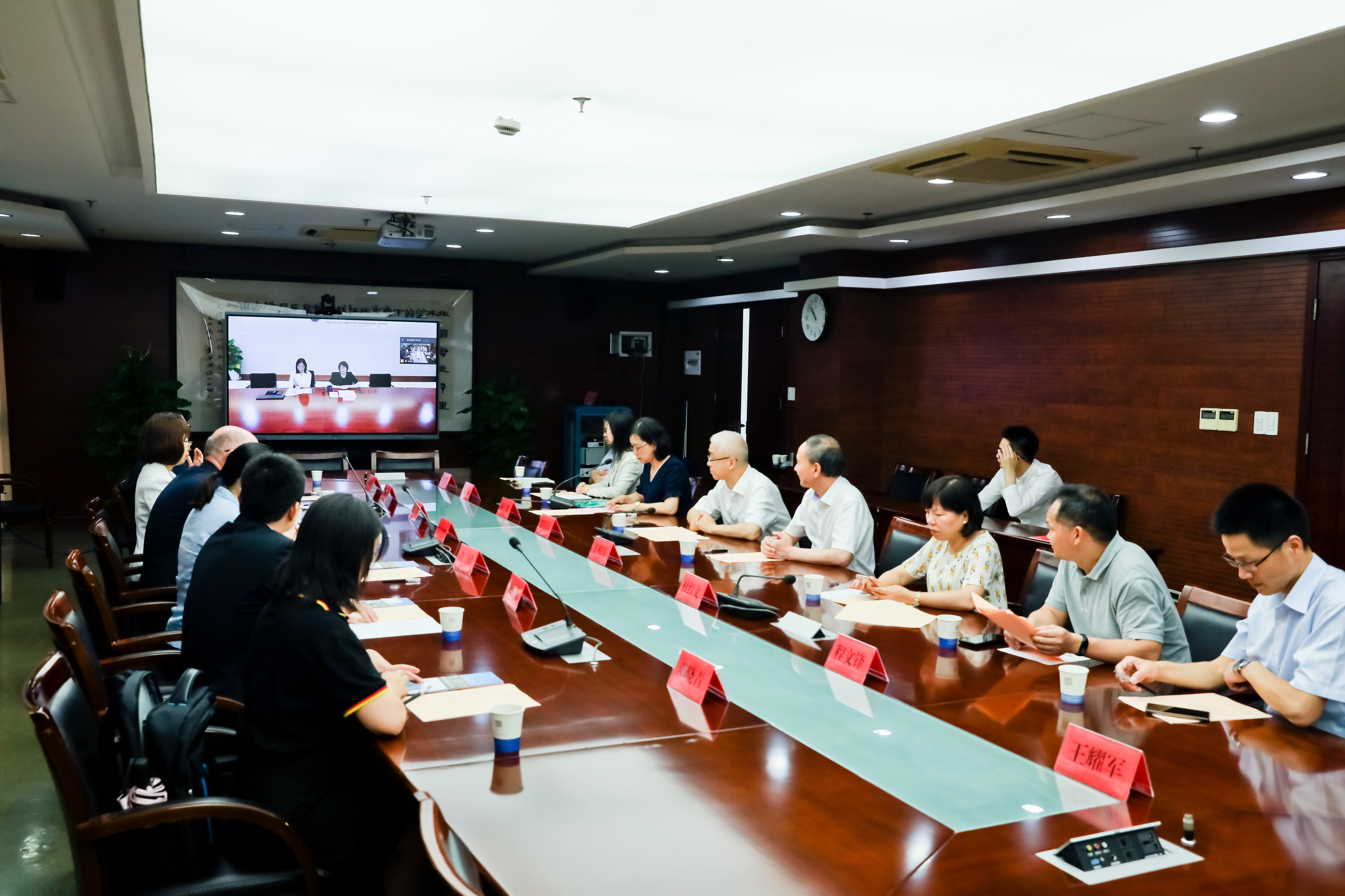 中国教育国际交流协会职业教育与培训部主任何培、高级主管张俊卿参加线上会议,德国莱茵TÜV集团上海有限公司执行董事Lutz Frankholz、莱茵学院与生命关怀大中华区总经理陈俊东、大中华区华东区销售总经理曲明等一行8人来校。校长贺星岳、副校长丁明军及智能制造学院、自动化学院、增材制造学院、国际教育学院、外事办相关部门负责人出席签约仪式。仪式由国际教育学院院长、外事办主任陶宇主持。
