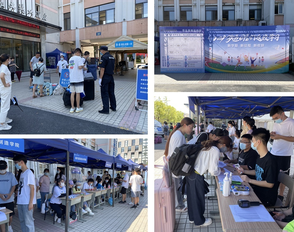 今天是学生返校第一天。上午,校长贺星岳、党委副书记周增逵率相关职能部门负责人来到立德园、立业园,检查指导学生返校报到和疫情防控工作。