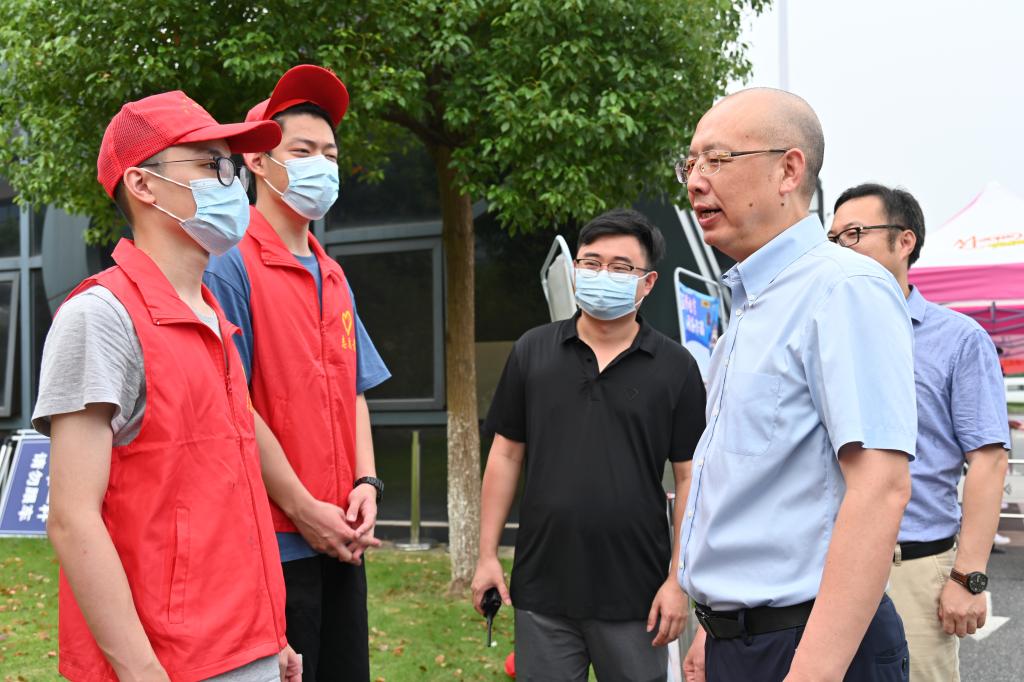 9月6日是智能制造、数字商贸、智慧交通、国际教育等四个学院新生报到的日子。汤书记首先来到学校大门,仔细询问交通疏导、车辆管理、入校测温亮码、新生引导、行李运送等情况,并向坚守岗位的志愿者表示感谢和问候。汤书记说,你们的服务和付出,让新生一进校门就感受到机电大家庭的关怀和温暖,榜样作用会成为一种精神传承,在他们心里埋下奉献和关爱的种子,让他们铭记,并激励他们也成为像你们这样的优秀志愿者。当得知有部分志愿者是昨天刚报到的大一新生时,汤书记更是为他们鼓掌,他说,这就是机电精神的发扬和传承,各位同学不顾远途疲惫站上迎新的志愿岗,感谢大家,也希望大家秉持奉献和奋斗精神,在温暖的机电大家庭学知识、长才干、圆梦想。