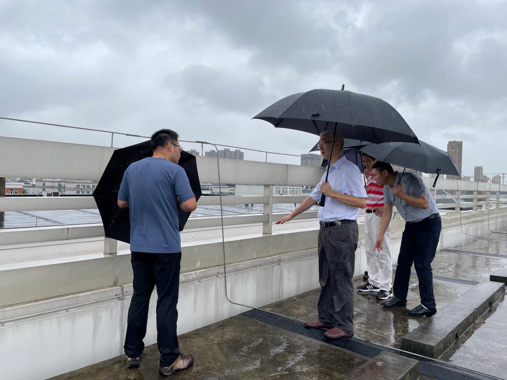 为进一步保障校园安全,全力做好14号超强台风应对工作。9月13日早上,校长贺星岳、副校长周纯江率院办、宣传统战部、保卫处、校园建设和后勤处等相关部门负责人对学校滨江校区校园整体尤其是重点区域的防汛防台工作进行全面检查。