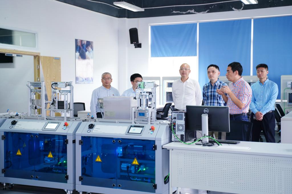 张书记一行先后来到滨江校区工业机器人焊接技术中心、轨道交通实训基地、智能制造实训基地、智能控制技术实训基地、铸造3D打印实训基地和创意设计3D实训基地,详细了解实训基地建设理念、管理模式、运行机制等,仔细询问实训室基础设施建设、实训设备使用和学生上课等情况。