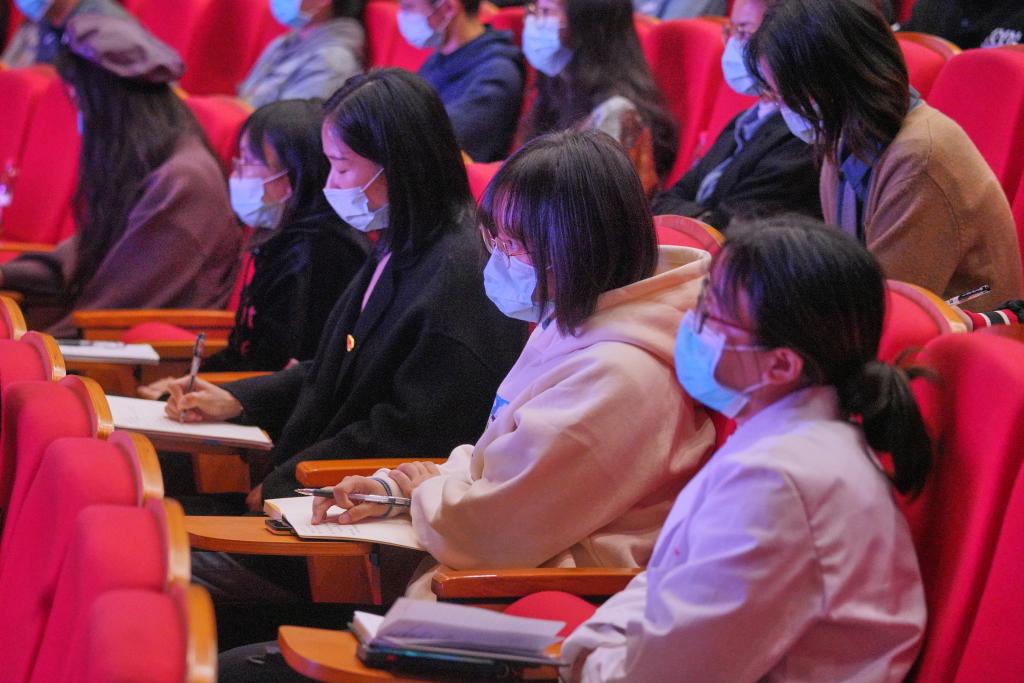 敖常委以《把握历史方位 担当时代使命 在第二个百年新征程上唱响青春之歌》为主题,围绕“从百年党史来看:心怀“国之大者”,坚定信念信心”、“以嘉兴为例:感悟时代变迁,展望美好未来”、“立足青春逐梦:未来属于青年、希望寄予青年”三个方面,结合自己的学习心得,与我校师生作交流分享。