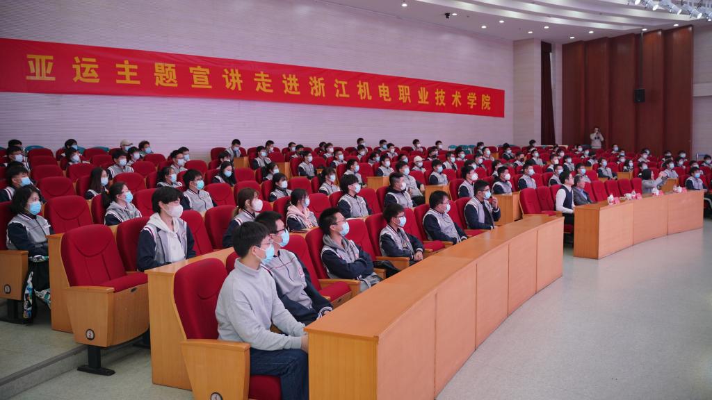 周副书记对亚组委领导的到来表示欢迎。他表示,杨部长的宣讲让我们更加全面深入地了解了杭州承办亚运会的意义所在。当前,亚运会志愿服务的各项筹备工作已进入冲刺阶段,希望广大师生充分发挥主人翁和宣传者的作用,积极普及亚运文化和志愿服务理念,带动身边同学共同参与亚运、服务亚运、奉献亚运的积极性,切实发扬“奉献、友爱、互助、进步”的志愿服务精神,为办成一届具有“中国特色、浙江风采、杭州韵味、精彩纷呈”的体育文化盛会贡献机电力量,展示我们机电风采!
