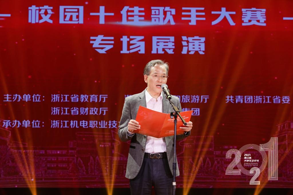 10月27日,2021年浙江省大学生艺术节校园十佳歌手专场展演在我校举行,拉开了全省大学生艺术节现场展演活动的序幕。校党委副书记周增逵出席并致辞。