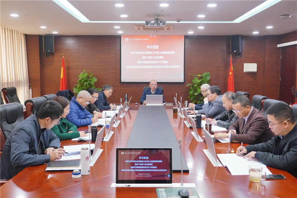 12月23日,学校召开党委理论学习中心组会议,学习贯彻习近平总书记在全国宗教工作会议上的重要讲话精神、省委十四届十次全会精神和《新时代高校教师职业行为十项准则》《浙江机电职业技术学院师德师风负面清单和失范行为处理办法》文件精神。党委书记汤兆武主持会议并领学习近平总书记在全国宗教工作会议上的重要讲话精神。