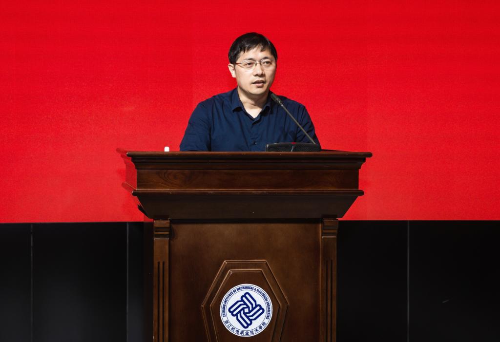 现代信息技术学院党总支书记任峰作为二级党组织代表作交流发言,模具教工党支部书记吕永锋作为党支部代表作交流发言。