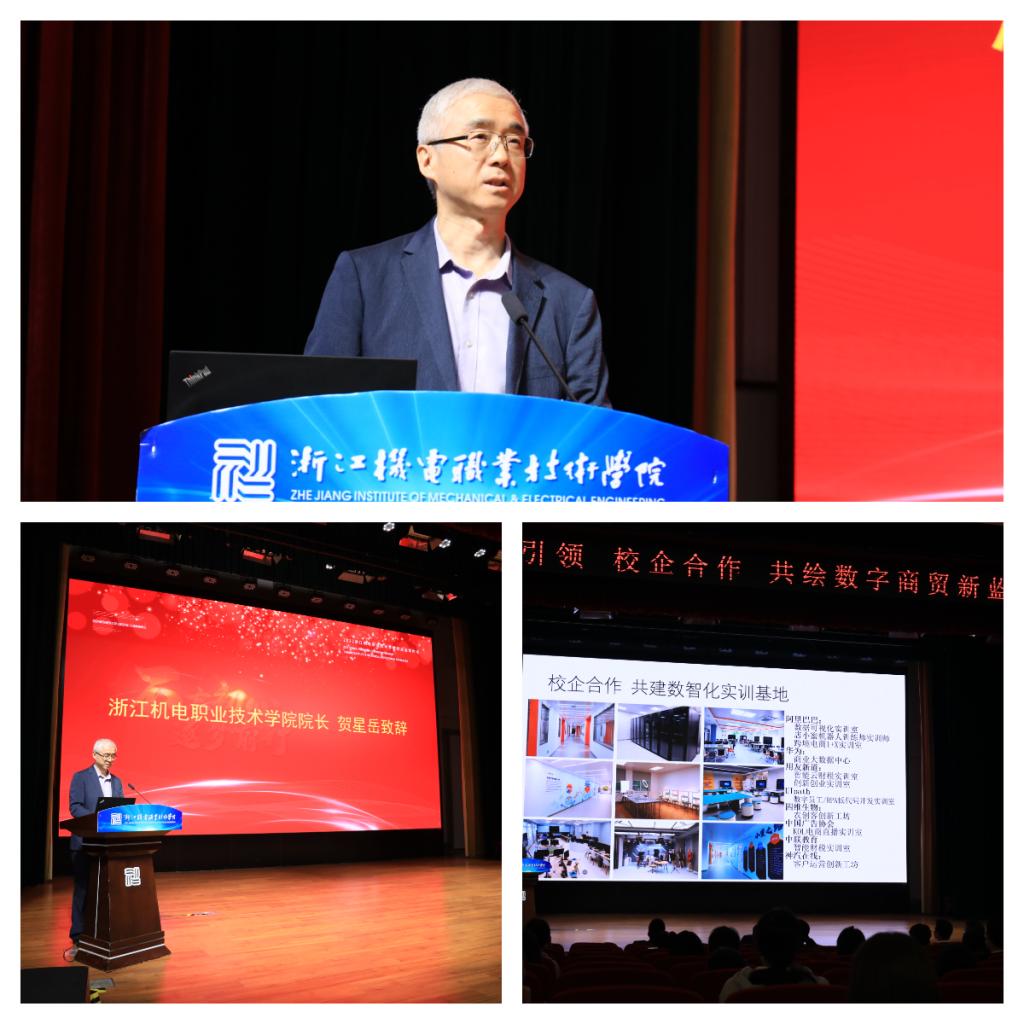 浙江机电职业技术学院校长贺星岳出席论坛并致辞。他指出浙江机电职业技术学院作为中国特色高水平高职学校建设单位(A档),始终坚持“开放、合作、服务”的办学理念,致力于服务地方经济社会发展,近年来数字商贸学院把握数字经济、数字产业、数字变革的前沿方向,立足数字制造业办学和所处高新技术区位优势,积极与各方企业提升合作水平、搭建校企产学合作平台、开展协同创新,对于构建学校产教融合新模式、引领学校产教共建、产教融合新发展发挥了重要作用。他希望与会企业能一如既往地支持参与、紧密合作,商洽谋划产教融合、校企合作的发展策略、运行机制和实现形式,实施“校企党建共建”项目载体,整合校企党建平台,共建共享高水平、高效能的数字商贸产教融合发展平台。