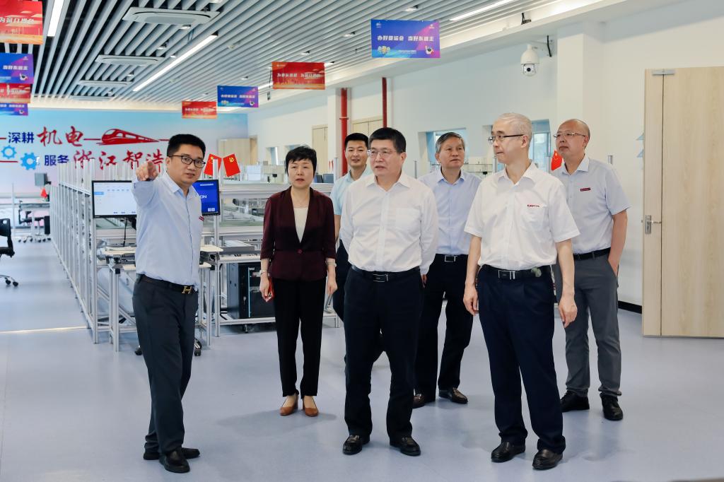 成岳冲一行参观了就业创业服务中心、众创空间、工业机器人焊接技术应用中心、轨道交通产教融合基地、创客空间等,详细了解学校办学基本情况、就业创业、产教融合和未来发展等。