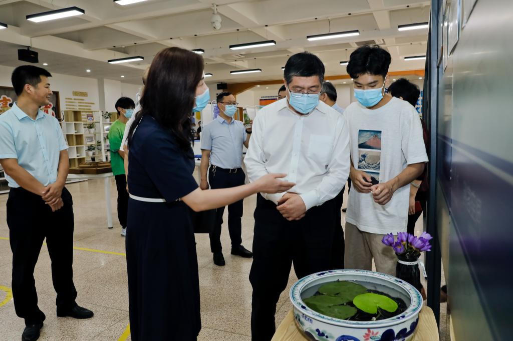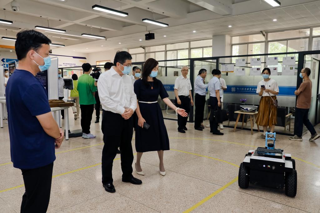 成岳冲一行还来到创客空间。这里是集路演平台、办公工位、政策服务、竞赛辅导等功能于一体的大学生创新创业孵化载体。成岳冲与创业师生和企业代表亲切交流,仔细了解智能可爬楼扫拖一体机、自动巡检无人车、跨境电商资源开发、睡莲种植和观赏鱼养殖等多种创业项目。