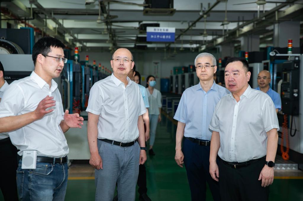 在智能制造实训基地,考察团详细了解基地的设备配置、产教融合等情况。该基地由省公共智造基地、数字化车间、精密制造技术中心、模具制造技术中心、智能控制技术中心等组成,汇集了国内外著名制造企业主要产品,实现了教学和生产有效对接。
