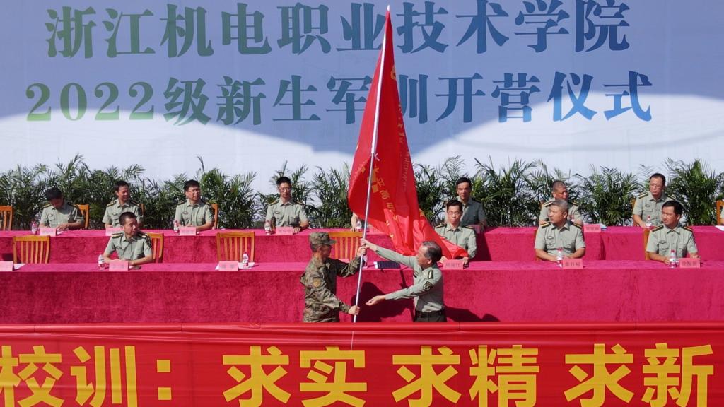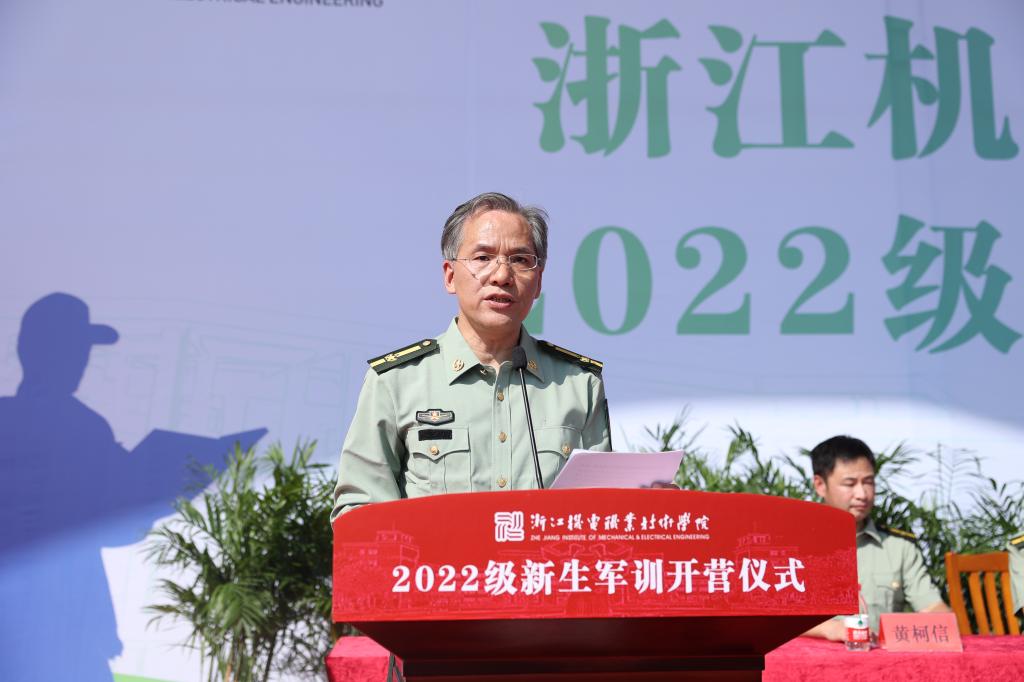 9月16日上午,浙江机电职业技术学院在海宁校区举行2022级新生军训开营仪式。党委副书记周增逵,副校长周纯江,军训团团长陈攀、军训团成员,相关职能部门和各分院负责人,辅导员、班主任及2022级新生参加开营仪式。