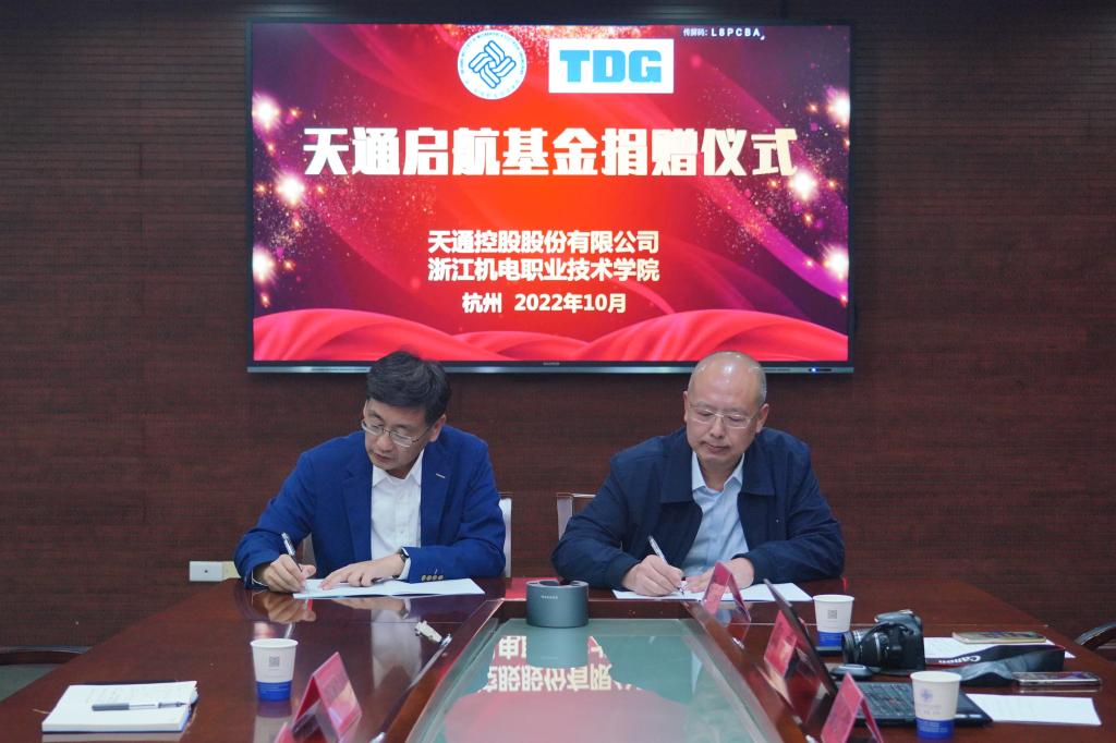 随后汤兆武与高学工签订了天通启航基金捐赠协议,为天通控股股份有限公司颁发了“高质量就业单位”。