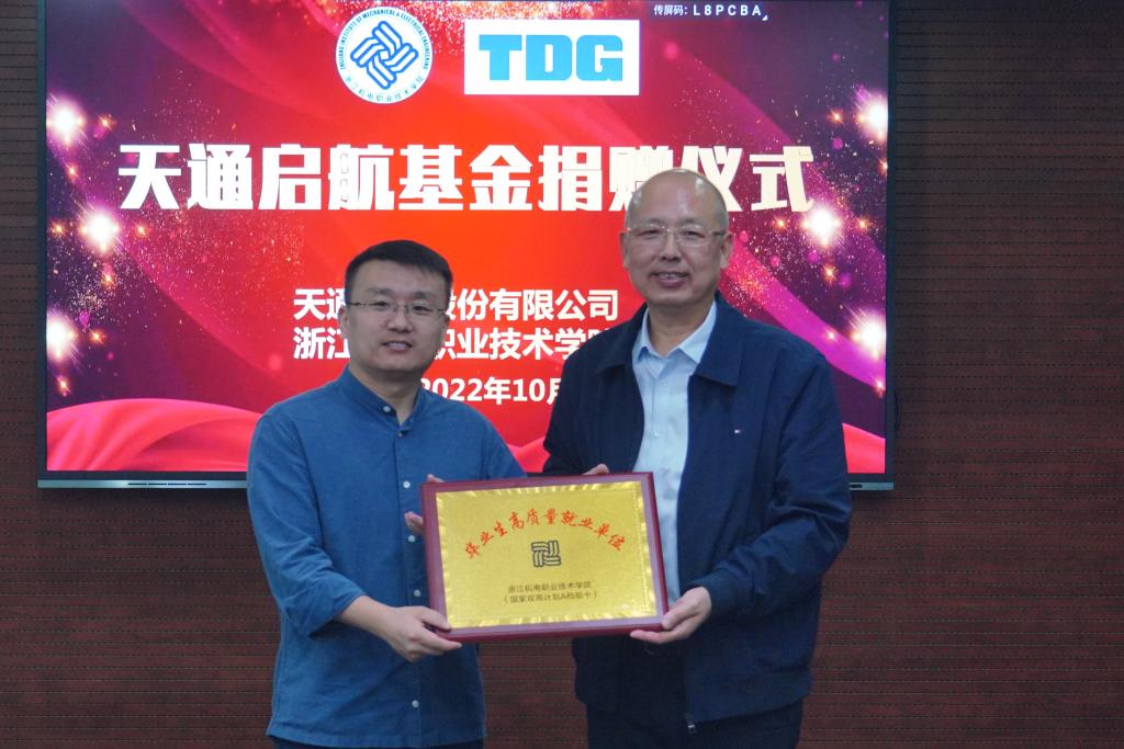 为加强校企合作、深化产教融合、助推学校发展,在学校建校70周年之际,天通控股股份有限公司到校开展校庆捐赠,为学校70周年校庆送来一份深厚祝福。