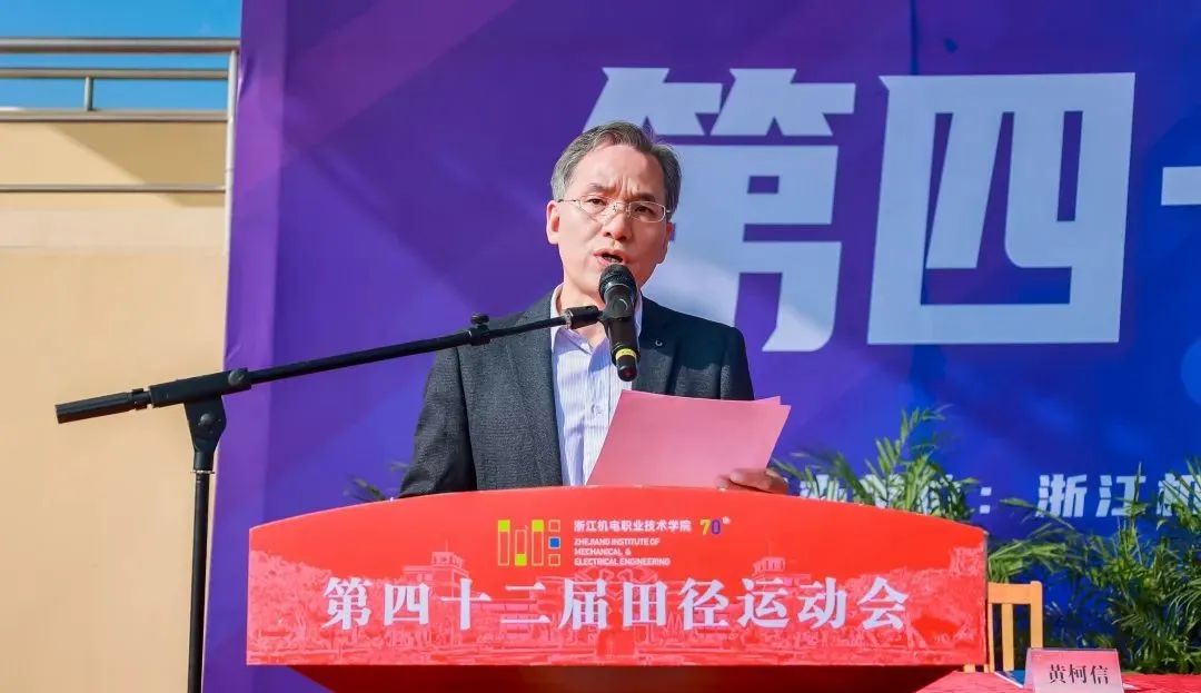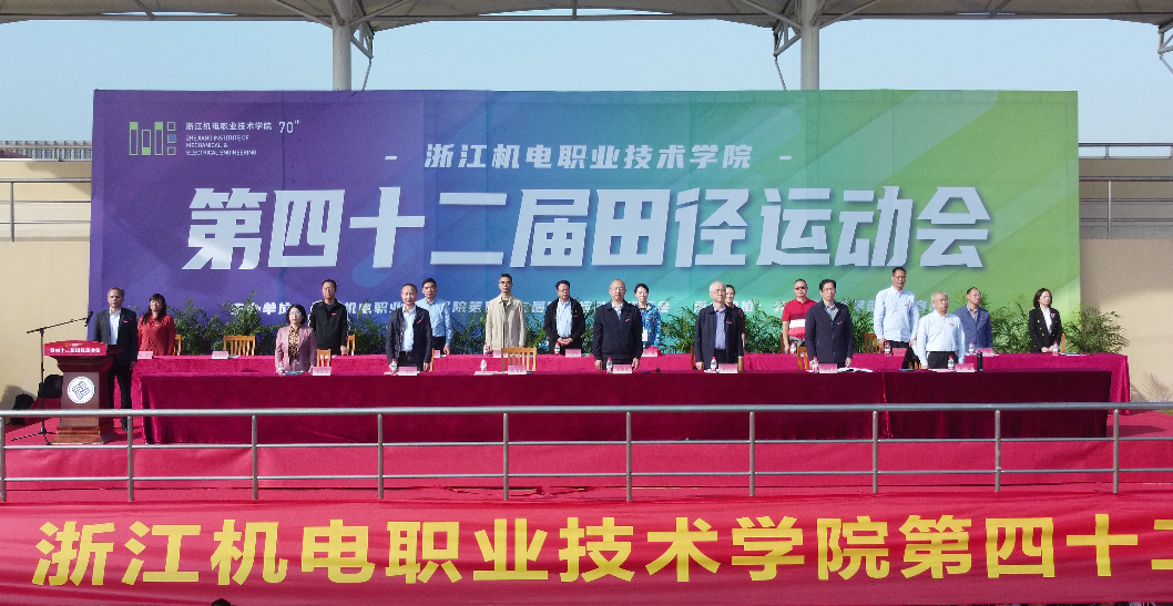 11月2日上午,浙江机电职业技术学院第四十二届田径运动会开幕式在海宁校区举行。校党委书记汤兆武宣布运动会开幕,校长贺星岳致开幕辞,党委副书记周增逵主持开幕式。校领导班子成员周纯江、丁明军、王斌、邓劲莲出席开幕式。校运动会组委会成员,相关职能部门、二级学院负责人,各位辅导员、班主任,全体裁判员和运动员参加开幕式。在庄严的国歌声中,田径运动会拉开帷幕。
