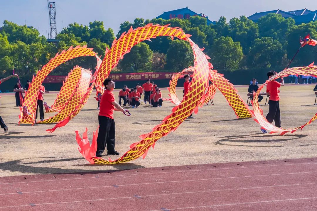 田径盛会,笙歌动天。广播体操比赛、女声合唱《美丽中国》、舞蹈《等你来》、太极、挥旗、舞龙、武术,表演者用自己的热情感染着现场的每一个人,更把整个开幕式的氛围推向高潮。