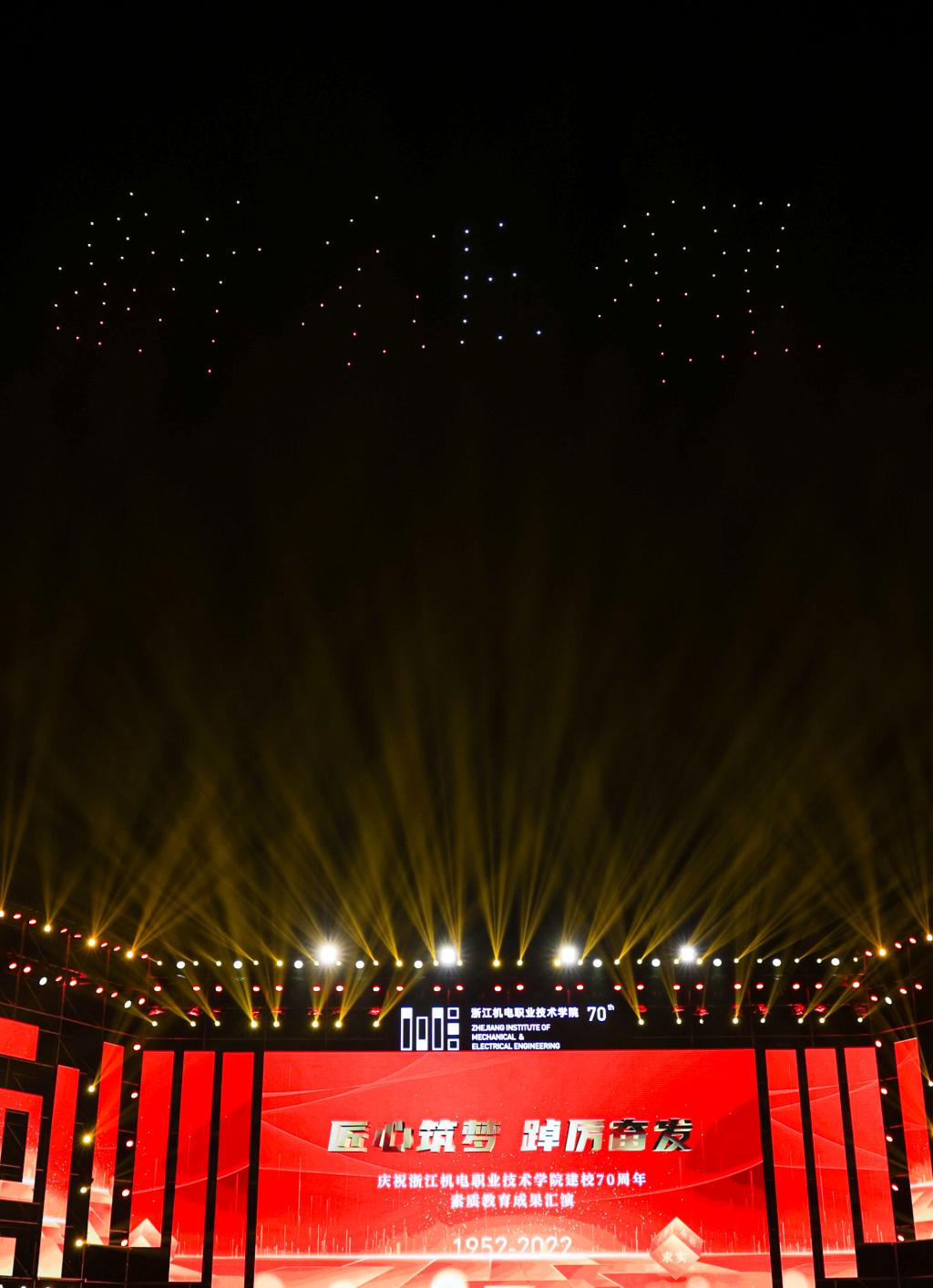 “匠心筑梦·踔厉奋发”素质教育成果汇报演出分为《匠·求实》《铸·求精》《跃·求新》三个篇章,以舞蹈、音诗画、交响乐、歌曲联唱、无人机表演等形式,为母校庆祝70周岁生日。