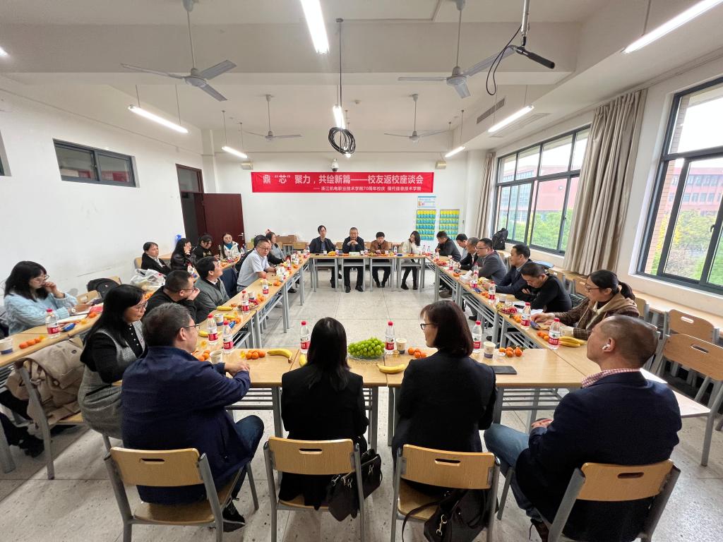 数字商贸学院的校友们在校史馆与浙江机械工业博物馆中一起重温学校七十年的峥嵘岁月、发展历程,参加“感恩母校,情系商贸”师生座谈会,一起收看校庆庆典大会,并举办了班级聚会,回忆青涩岁月。