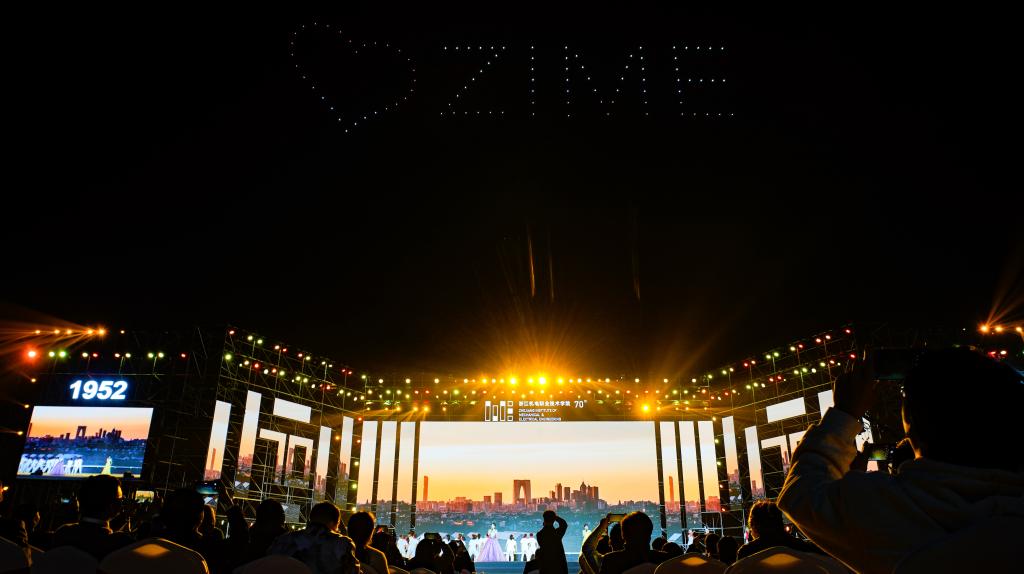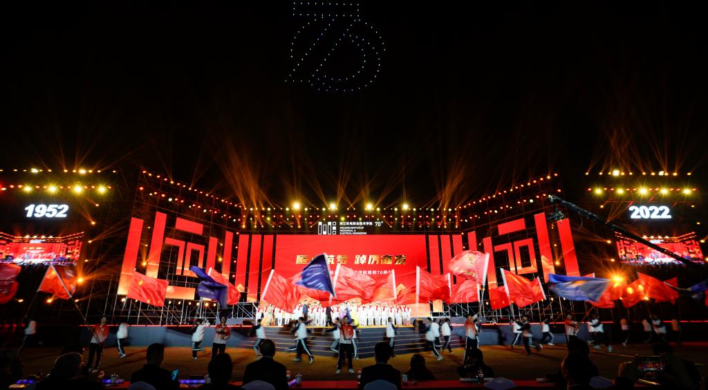 11月19日晚,“匠心筑梦·踔厉奋发”浙江机电职业技术学院建校70周年素质教育成果汇报演出在海宁校区举行。浙江省机电集团董事、总经理杨震宇,海宁市发改局、财政局、人社局、科技局、长安镇、高新区管委会等相关部门负责人,校党委书记汤兆武、校长贺星岳,校领导班子成员周增逵、丁明军、王斌、邓劲莲等,校友代表,校职能部门、二级学院相关负责人,教职工、在校生代表等在现场观看演出。演出还通过凤凰网、官方视频号、官方抖音等同步直播。