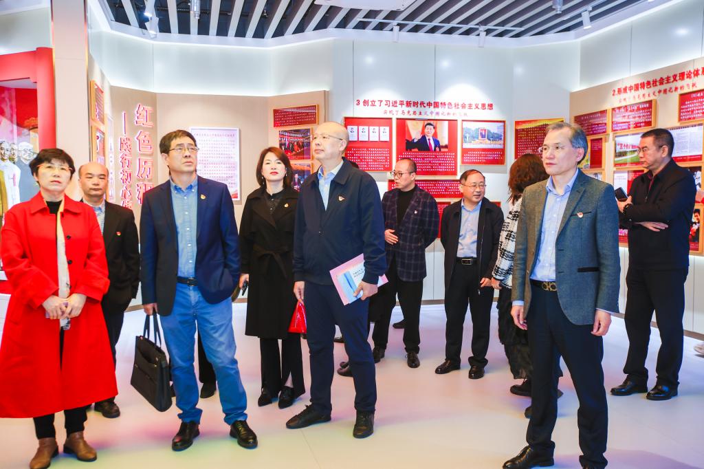 揭牌仪式结束后,与会领导、嘉宾和师生代表100余人参观了筑牢“红色根脉”主题教育实践基地。与会领导和嘉宾逐一听取了红色信仰、红色历程、红色旗帜、红色沃土、红色基因、红色时空等六大红色板块的讲解,观看了以图文、实物展陈、VR沉浸体验、视听展播等多形式呈现的中国共产党理论创新与实践发展成果。