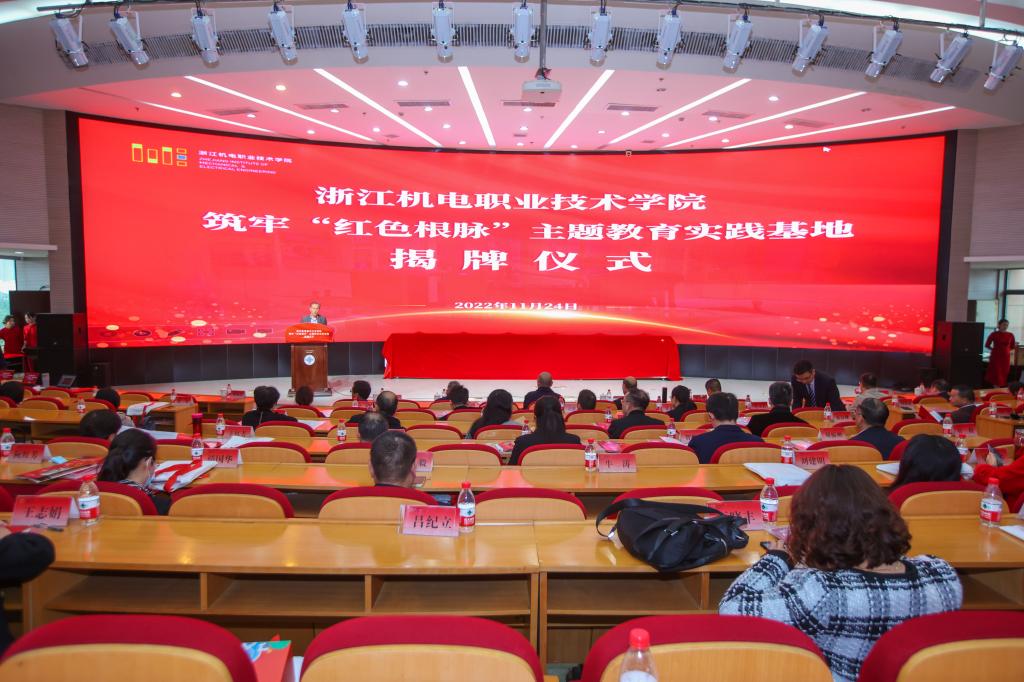 11月24日上午,浙江机电职业技术学院筑牢“红色根脉”主题教育实践基地揭牌仪式举行。浙江省社科联副主席陈先春,浙江省教育厅宣教统战处处长陈雷,中国财税博物馆党委委员、副馆长刘国荣,杭州革命烈士纪念馆馆长骆敏,浙江理工大学红色文化研究院院长渠长根等领导嘉宾受邀出席,全省20余所本专科院校马克思主义学院负责人,中国共产党杭州历史馆(杭州方志馆)代表,滨江区浦沿街道社区代表,企业代表出席揭牌仪式。校党委书记汤兆武,党委副书记周增逵出席,学校党校办、组织部、宣传统战部、学工部、团委等部门和二级学院党总支负责人,马克思主义学院全体教师和学生代表参会。