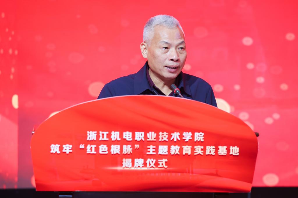 陈先春在致辞中指出,在全国上下深入掀起党的二十大精神学习热潮之际,浙江机电职业技术学院筑牢“红色根脉”主题教育实践基地落成,充分展现新时代我省高校依托浙江红色资源、不断创新立德树人新成果;充分体现学校高度重视立德树人,坚持以习近平新时代中国特色社会主义思想铸魂育人的政治站位。