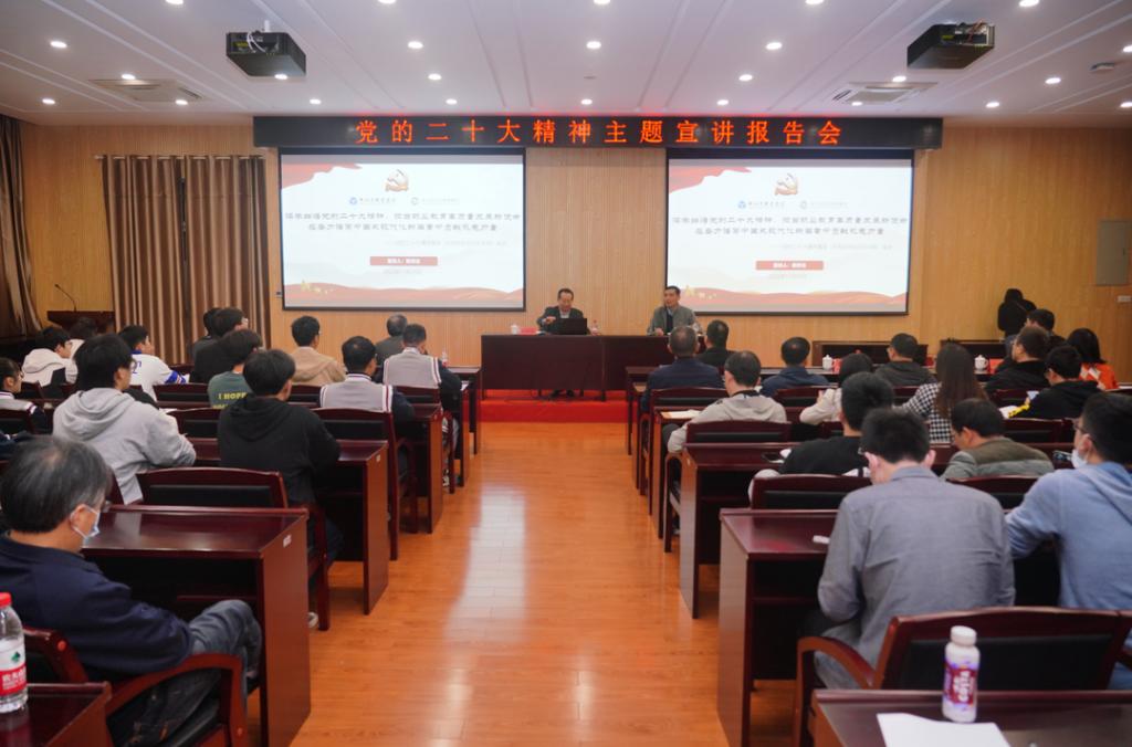陈存法从深刻领会党的二十大的重大意义、准确把握党的二十大的精髓要义、坚决落实党的二十大的部署要求等三方面展开宣讲。他指出,党的二十大是在全党全国各族人民迈向全面建设社会主义现代化国家新征程 、向第二个百年奋斗目标进军的关键时刻召开的一次十分重要的大会、是一次高举旗帜、凝聚力量、团结奋进的大会。我们要深刻认识大会主题、大会成果、大会意义,高举中国特色社会主义伟大旗帜,全面贯彻新时代中国特色社会主义思想,弘扬伟大建党精神,自信自强、守正创新,踔厉奋发、勇毅前行,为全面建设社会主义现代化国家、全面推进中华民族伟大复兴而团结奋斗。
